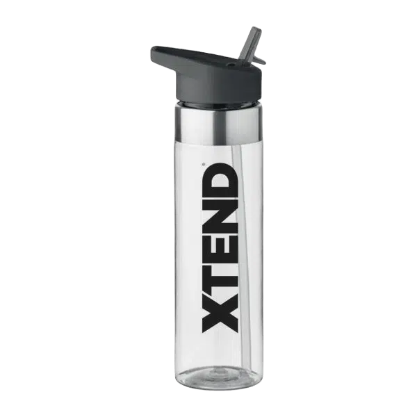 Stylish and practical water bottle with a capacity of up to 650 ml, ideal for use in the gym, outdoor training, hiking, traveling, or simply as a drinking bottle. The bottle is made of transparent and lightweight material and is very convenient to carry. It is durable and highly functional. The cap also features a plastic loop that allows you to attach the bottle to a sports bag or backpack.